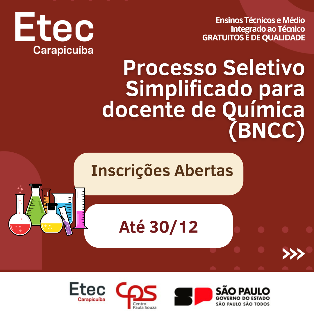 PSS – Processo Seletivo Simplificado para docente de Química (BNCC) (Inscrições abertas)