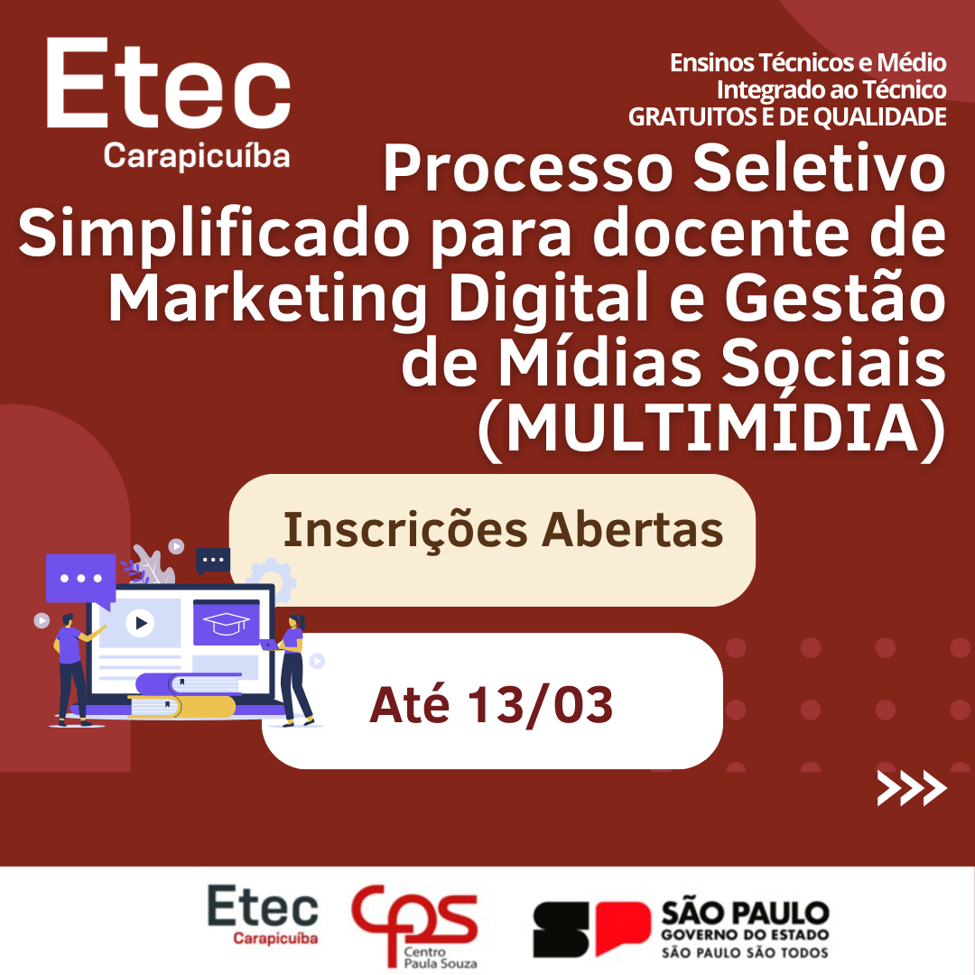 PSS – Processo Seletivo Simplificado para docente de Marketing Digital e Gestão de Mídias Sociais (Inscrições abertas)