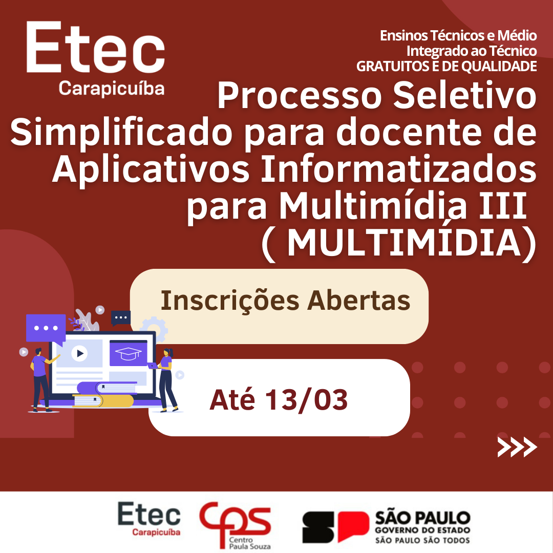 PSS – Processo Seletivo Simplificado para docente de Aplicativos Informatizados para Multimídia III (Inscrições abertas)