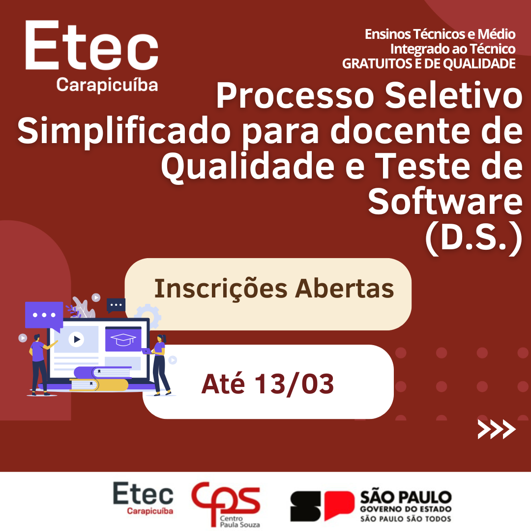 PSS – Processo Seletivo Simplificado para docente de Qualidade e Teste de Software (Em andamento)